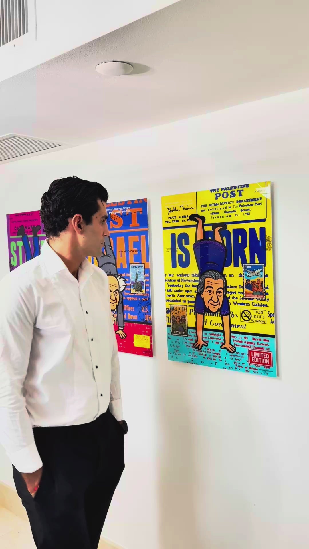 Born to Stay is a contemporary pop art triptych inspired by the historic newspaper headline published the day after Israel’s Declaration of Independence. “State of Israel is Born.”